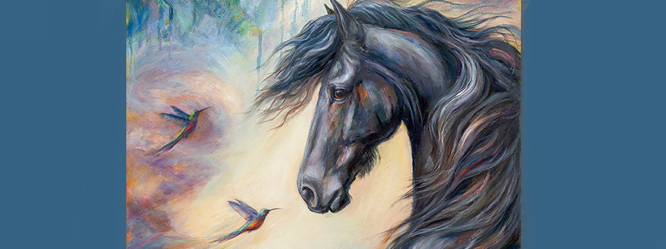 I really enjoy painting commissions because it has such profound meaning for my clients. The bond of love between us and our four legged friends is so great. Although sometimes it stretches me artistically, it also brings me great joy! One of my dear collectors asked me recently to paint a memory from her childhood. She showed me an old black and white photo of her when she was 16 years old riding her beloved horse Tony. He stood at 17.2 hands and was quite the hunter-jumper show horse. She described to me what her hair was like, the colors of her clothing, the place where she lived on her family’s farm in Missouri. She still thinks about Tony to this day. I delivered her painting to her last week and she really loved it, exclaiming, ‘Oh I am young again!’ Her childhood friend will always have a very special place in her heart.